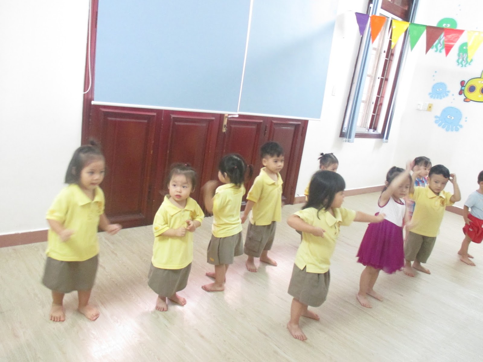 Bây giớ các bạn k2 đang đứng nhảy mẫu cho các em lớp nursery bắt chước nhảy theo.